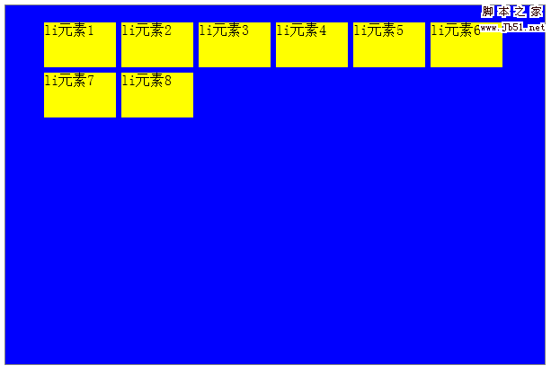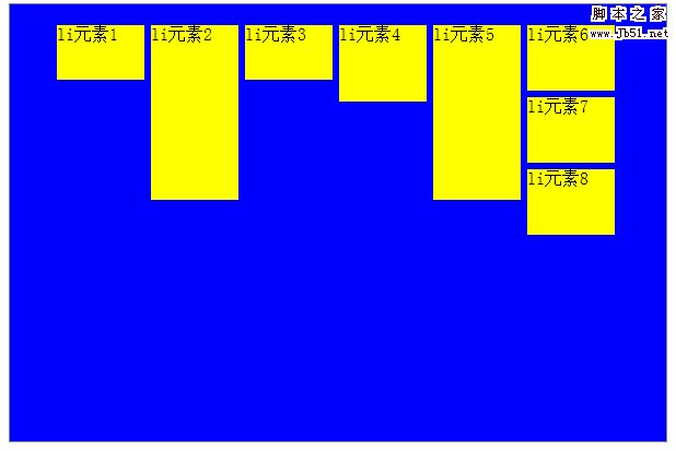 很意外吧,主要排列到元素7的时候,一行已经显示不下了,所以要换行,但此处换行并不是从行头开始,而是从元素5那开始,因为元素5比元素6高很多导致。