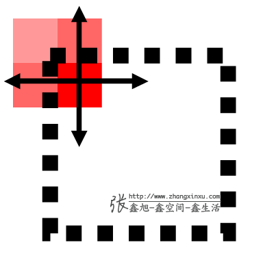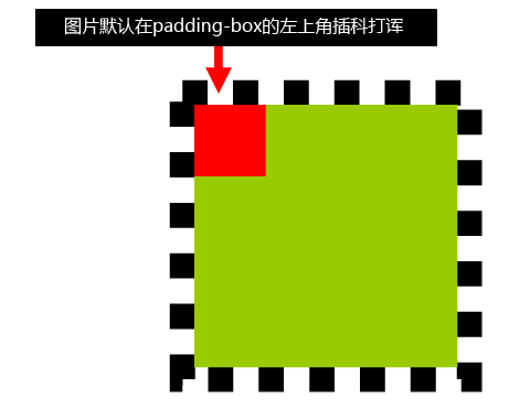 默认情况下,背景图片(background images)是在padding-box的左上角落脚安家的。如下图: