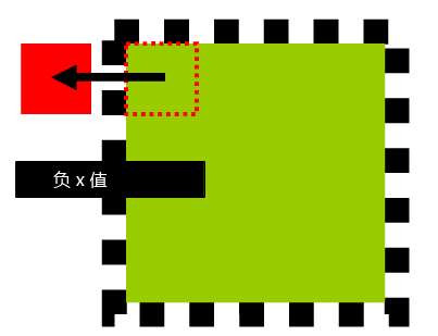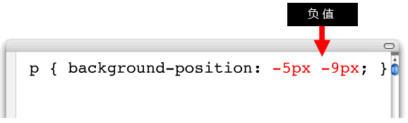 负值产生的效用是把背景图片往左上方向移动——元素背景区域外面。