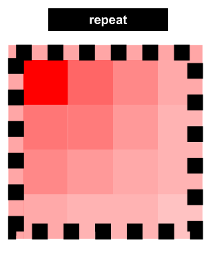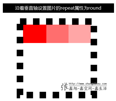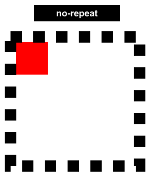 默认情况下,背景图片会沿着x轴,y轴重复。同样的,是起始于padding-box的左上角。尽管背景图片平铺起始于padding-box左上角,但是其从各个方向朝外面平铺,包括border区域。