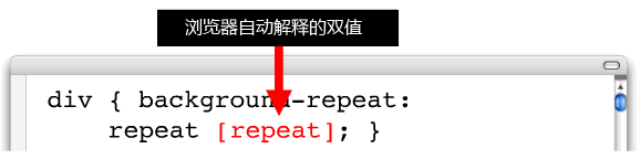 如果我们只使用一个值,浏览器会自动解释成两个值。这就保证了background-repeat属性向后兼容。