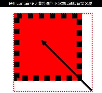 “contain“值的效用是按比例将图片缩放到最大尺寸以使其高宽都在背景区域里面,其主要用在背景图片比容器大的情况下。需注意使用该值图片可能有扭曲。