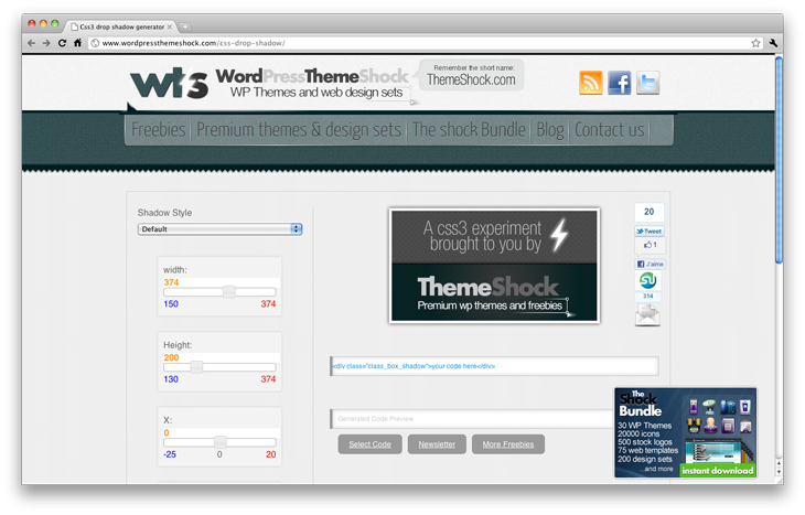 一款很棒的阴影效果生成工具,自动生成相应的代码。→ 访问 CSS3 Drop shadow generator