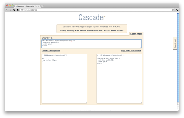 这是一个帮助开发者从HTML代码中分离出内联样式的工具。→ 访问 Cascader