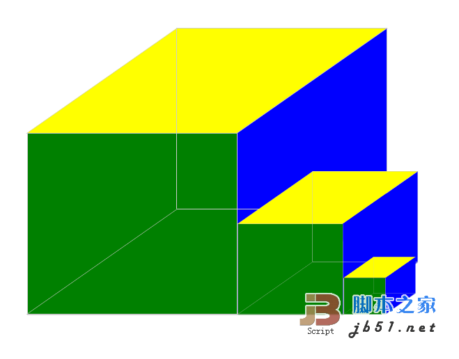 <!DOCTYPE html PUBLIC "-//W3C//DTD XHTML 1.0 Transitional//EN" "http://www.w3.org/TR/xhtml1/DTD/xhtml1-transitional.dtd"> <html xmlns="http://www.w3.org/1999/xhtml"> <head> <meta http-equiv="Content-Type" content="text/html; charset=utf-8" /> <title>CSS3转换功能(www.jb51.net)</title> <script type="text/javascript" src="https://zhanzhang360.qulang.net/imgupload/006220/jquery-1.7.min.js"></script> <style type="text/css"> * { margin: 0; padding: 0; list-style: none; } body { padding-top: 100px; } .box { margin: 0 auto 0; width: 300px; height: 500px; position: relative; } .box .topBox { position: absolute; width: 300px; height: 150px; border: 1px solid #ccc; top: 0; left:107px; background-color: yellow; -moz-transform: skew(-55deg,0); -webkit-transform: skew(-55deg,0); -o-transform: skew(-55deg,0); font-size: 100px; text-align: center; } .box .topBox02{ position: absolute; width: 300px; height: 260px; border: 1px solid #ccc; border-top: none; top: 152px; left: 0; background-color: green; } .box .topBox03{ position: absolute; width: 214px; height: 260px; border: 1px solid #ccc; border-top: none; border-left: none; top: 76px; left: 302px; background-color: blue; -moz-transform: skew(0,-35deg); -webkit-transform: skew(0,-35deg); -o-transform: skew(0,-35deg); } .box .topBox04 { position: absolute; width: 300px; height: 150px; border: 1px solid #ccc; top: 260px; left:107px; -moz-transform: skew(-55deg,0); -webkit-transform: skew(-55deg,0); -o-transform: skew(-55deg,0); } .box02 { -moz-transform: scale(0.5,0.5) translate(455px,-838px); -webkit-transform: scale(0.5,0.5) translate(455px,-838px); -o-transform: scale(0.5,0.5) translate(455px,-838px); } .box03 { -moz-transform: scale(0.2,0.2) translate(1671px, -4354px); -webkit-transform: scale(0.2,0.2) translate(1671px, -4354px); -o-transform: scale(0.2,0.2) translate(1671px, -4354px); } .box .topBox05 { position: absolute; width: 300px; height: 260px; border-left: 1px solid #ccc; top: 0; left:214px; } </style> </head> <body> <div class="box"> <div class="topBox"></div> <div class="topBox02"></div> <div class="topBox03"></div> <div class="topBox04"></div> <div class="topBox05"></div> </div> <div class="box box02"> <div class="topBox"></div> <div class="topBox02"></div> <div class="topBox03"></div> <div class="topBox04"></div> <div class="topBox05"></div> </div> <div class="box box03"> <div class="topBox"></div> <div class="topBox02"></div> <div class="topBox03"></div> <div class="topBox04"></div> <div class="topBox05"></div> </div> </body> </html>