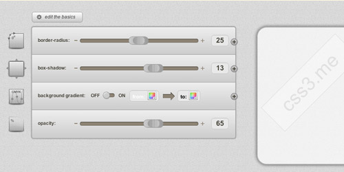 CSS3针对边界半径、box阴影、背景渐变和不透明度的CSS3代码生成器。