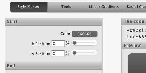 Gradient Editor一个强大的CSS渐变代码可视化编辑器,类似于Photoshop的渐变设置界面。