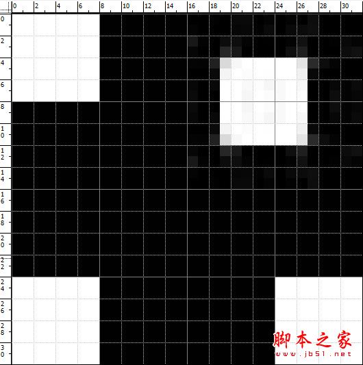 右上角的白色格子刚好没有在8*8像素的网格单元中,所以保存时会跟周围的8*8的网格单元颜色融合,下图的效果: