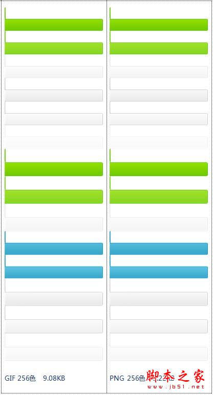 下图为微博的按钮背景图分别使用GIF和PNG格式保存的大小对比: