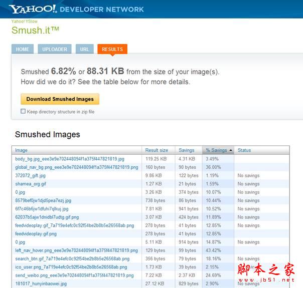 点击All Smush.it™,会自动跳转到http://www.smushit.com/ysmush.it/得到下图:
