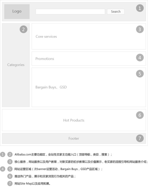 通过用户调研分析,目前网站用户对Alibaba.com提供的这几个核心服务的认知度较低,所以这次首页改版的首要目标就是要进行用户教育并传递网站的核心服务。