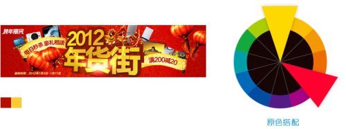 以下以banner为例,简单剖析下色彩的搭配技巧及色彩搭配组合方式以及搭配呈现的视觉效果。