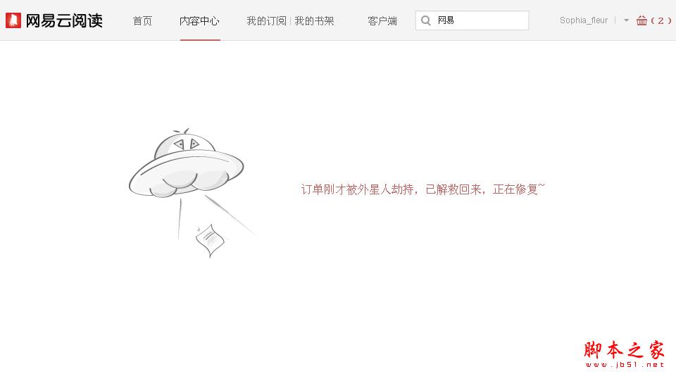 二、补救类。网易云阅读官网在开发过程中遇到过一个问题,用户在通过网易宝买单后数据传到平台审核需要一段时间导致此时用户可能再次点击订单再次购买,原因有可能是网速、有可能是数据对账……最后我们通过一个UFO事件解决了这个自己说不清用户知道也没多大意义的bug。这类报错页面在网页设计中很常见,网站出错了,原因说也说不清,何不采用默认的幽默方式让用户会心一笑。