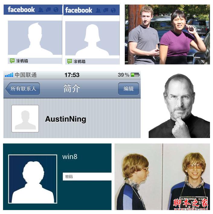 Facebook默认头像据说是创始人扎克伯格、苹果设计通讯录中默认头像怎么看都像乔布斯,这里求证。Windows8据说默认头像用比尔的。这些有象征品牌意义的默认头像在潜意识中起了宣传作用,美丽说和蘑菇街用的都是偏女性化的购物超人形象,蘑菇街会偏向保守。
