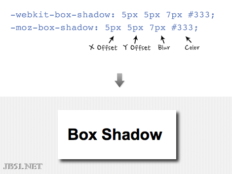 box-shadow的属性结构和text-shadow类似:x-offset, y-offset, blur, and color.