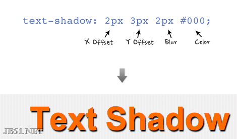 Text shadow由以下顺序构成:x-offset, y-offset, blur, and color,即垂直偏移、水平偏移、投影宽度(模糊半径)和颜色。