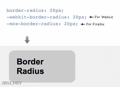 border radius(圆角)的速记法和padding和margin属性类似(例如border-radius:20px),为使浏览器能识别圆角属性,需添加特定的前缀,如”-webkit-”针对webkit浏览器,”-moz-”针对Firefox。