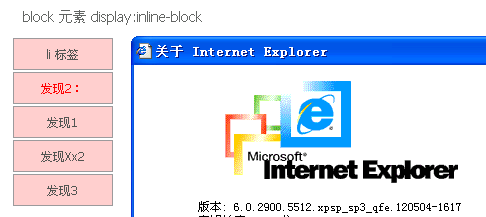 IE5.5 后开始支持 inline-block, 但是它所支持的 inline-block 不能等同于 CSS2.1 中的 inline-block,因为 IE5.5 比 CSS2.1 更早提出 inline-block 的概念并作为所谓的「私有属性值」使用,所以二者表现出来的效果是不完全一致。IE 5.5、6、7 、8(Q)中 block 元素对 inline-block 支持不完整,如果要达到类似的效果,需要先设置为 display:inline,然后使用 zoom:1 等触发hasLayout。IE 5.5、6、7 、8(Q)中 inline 元素欲达到 inline-block 的效果只需直接设置此属性值或使用 zoom:1 等均可。《各浏览器对 ‘display’ 特性值的支持程度不同》