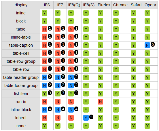 综上,现代浏览器都支持 display:inline-block ,IE6、7 inline 元素也可以达到同样的效果,IE6、7 block 元素需要设置 display:inline; zoom:1; 它们结合在一起便是: