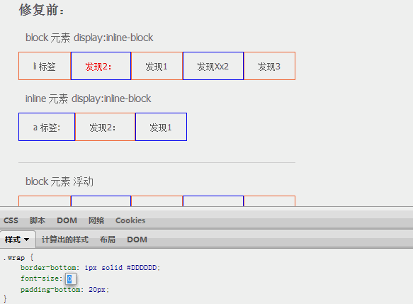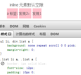 很清楚的看到,当 font-size:0 的时候元素间的空隙都为0了,或许到这里你会感到很欣喜了,原来掌握的根本性原因这么简单就搞定了啊!