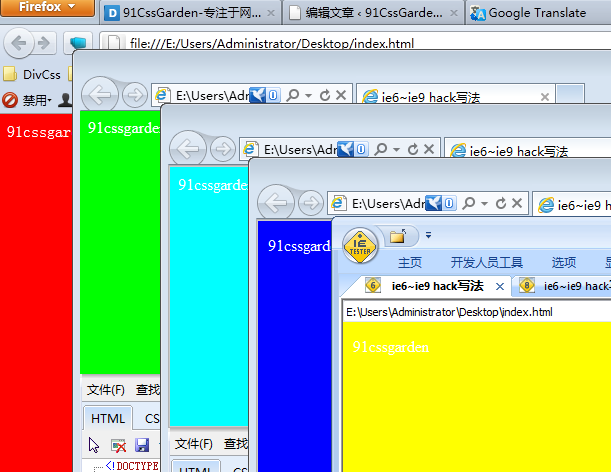 从后往前,依次是,firefox,ie9 ,ie8,ie7,ie6.