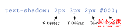 可以给一个对象应用一组或多组阴影效果,方式如前面的语法显示一样,用逗号隔开。text-shadow: X-Offset Y-Offset Blur Color中X-Offset表示阴影的水平偏移距离,其值为正值时阴影向右偏移,如果其值为负值时,阴影向左偏移;Y-Offset是指阴影的垂直偏移距离,如果其值是正值时,阴影向下偏移反之其值是负值时阴影向顶部偏移;Blur是指阴影的模糊程度,其值不能是负值,如果值越大,阴影越模糊,反之阴影越清晰,如果不需要阴影模糊可以将Blur值设置为0;Color是指阴影的颜色,其可以使用rgba色。
