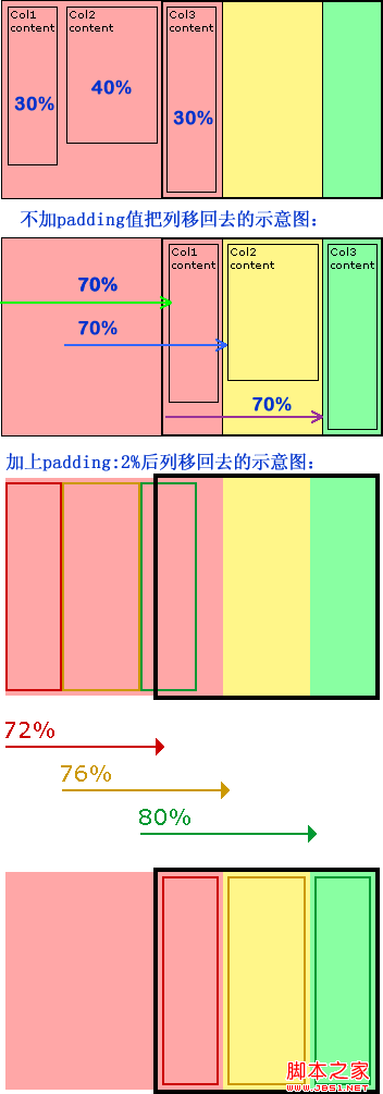 前面我们对三个内容元素都进行了相对定位,现在只需要按第五步将其定位回去,如上图所示。其实说到最后,你只要理解了这两幅,你就什么都清楚了。