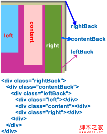 上图中,不管我们哪一列的高度最高,那么其三个容器“rightBack,contentBack,leftBack”的高度相应会随最高列的高列变化,下面我们一起来看其实现过程: