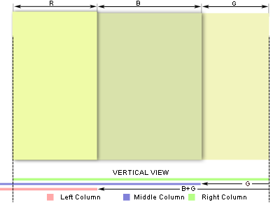 这种方法是我们实现等高列最早使用的一种方法,就是使用背景图片,在列的父元素上使用这个背景图进行Y轴的铺放,从而实现一种等高列的假像: