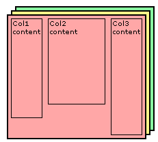 这种方法是不需要借助其他东西(javascript,背景图等),而是纯CSS和HTML实现的等高列布局,并且能兼容所有浏览器(包括IE6),并且可以很容易创建任意列数。