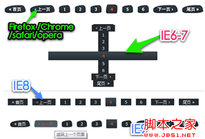 这一点是我今天要特别提出来的一点,大家都知道,我们列表项要放置在一行显示,需要使用“float”来实现,但是使用了浮动后,我们就无法让整个分页导航水平居中,如此一来就会给我们带来一个两难境地。那么今天我在这里给大家展示另外一种处理方法:“display:inline-block”来让列表项显示在一行,大爱看到这个肯定又说难了,因为其在IE6-7下是无法支持的。这一点大家说的一点不错,其实我们只需要在IE下稍作处理就OK了,我们具体来看一下如何实现其水平居中: