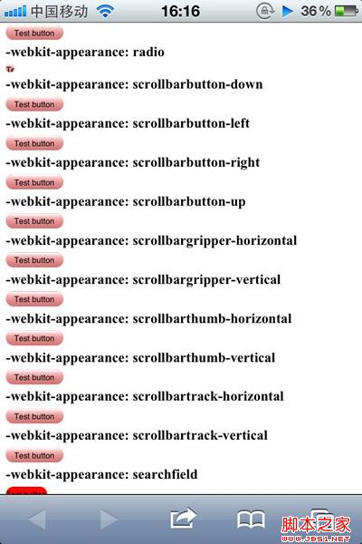 那么"-webkit-appearance"对button还有什么影响呢?大家可以参考下面的截图: