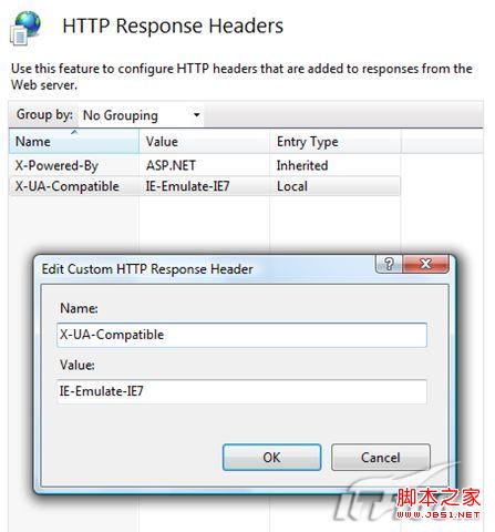 <add name="X-UA-Compatible" value="IE=EmulateIE7">