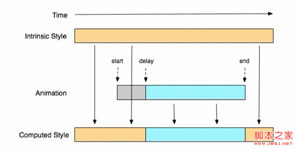 CSS3动画的生命周期如下图所示,从中可以清楚的看出duration和delay之间的关系: