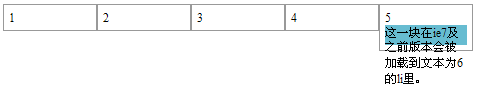 这一块在ie7及之前版本会被加载到文本为5的li里。