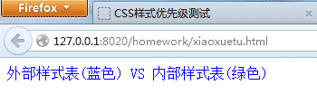 <div>外部样式表(蓝色) VS 内部样式表(绿色)</div>