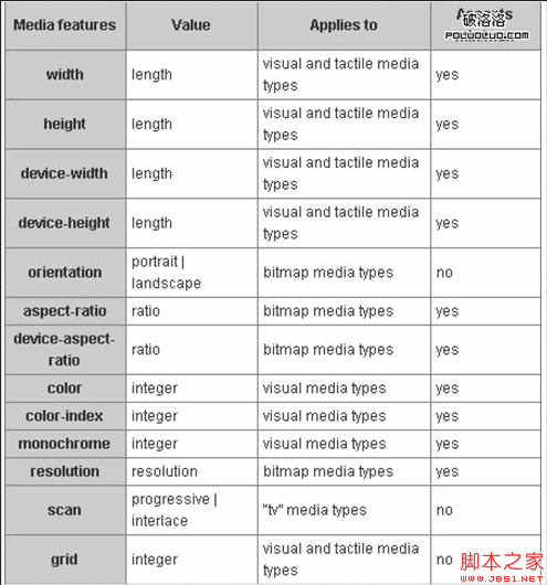 @media not handheld and (color){样式代码} //用于除便携之外的其他设备或非彩色便携设备中