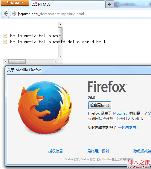 最近在我的本机win 7 + firefox 26.0 下遇到个很头大的bug,带滚动条的div容器里面的文字竟然溢出到容器之外了,见图: