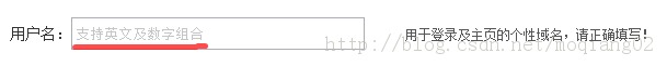 <input id="login_name" type="text" onblur="javascript:check_login_name();" onfocus="if(this.value=='支持英文及数字组合') this.value='';this.style.color='#000'" value="支持英文及数字组合" name="login_name">