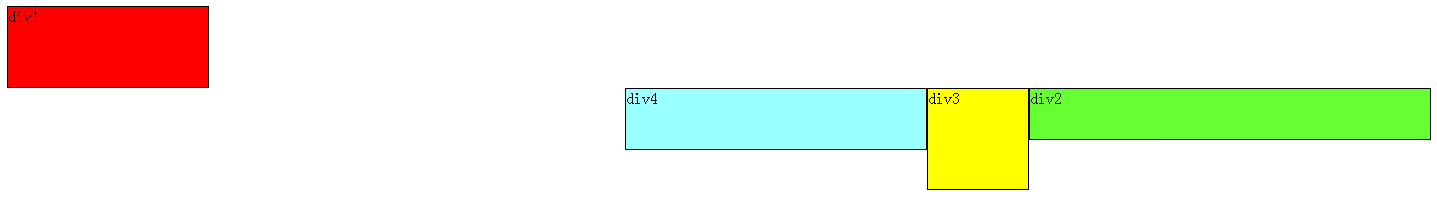 此时div2靠页面右边缘排列,不再遮挡div3,读者可以清晰的看到上面所讲的div1、div3、div4组成的流。