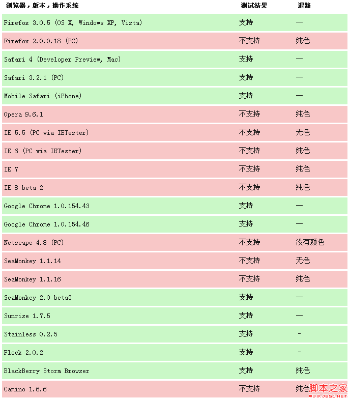 上面的数据是通过测试demo得到的,该测试页面包含了更多更完整的浏览器兼容性列表。