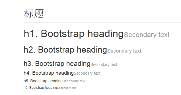 Html中的所有标题标签,从<h1>到<h6>均可使用。另外还提供了.h1到.h6的class,为的是给inline属性的文本赋予标题的样式。