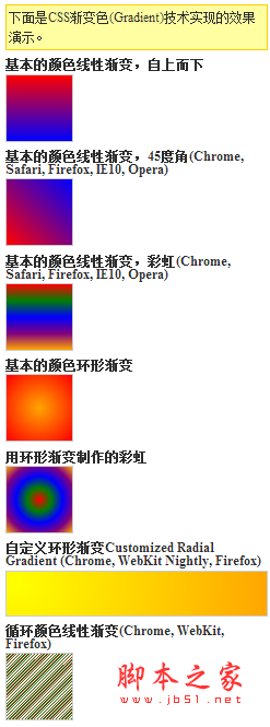 下面我们来看看CSS渐变色(Gradients)技术基本的语法,浏览器支持情况和缺陷。