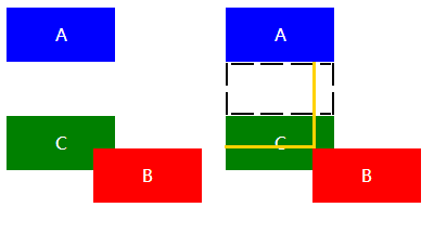 IE7下的表现更类似于float,会附加到父元素的末尾。