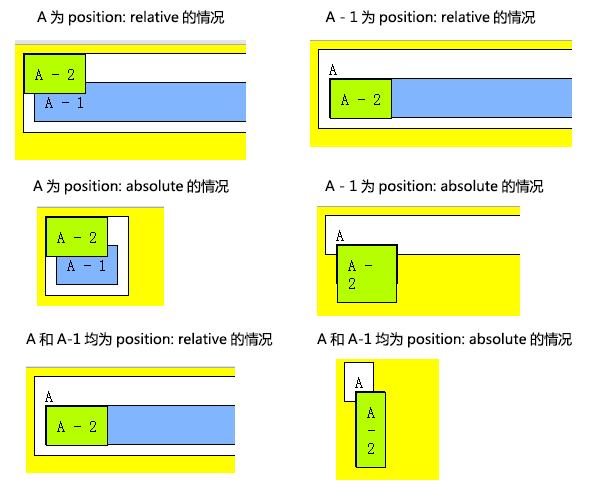 现在我们对A-2这个div设置绝对定位(Top: 0, Left: 0),而没有对它的父元素(A、A-1)设置任何的position值