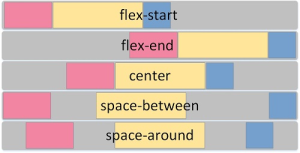 justify-content:space-between 伸缩项目会平均地分布在行里。第一个伸缩项目一行中的最开始位置,最后一个伸缩项目在一行中最终点位置。