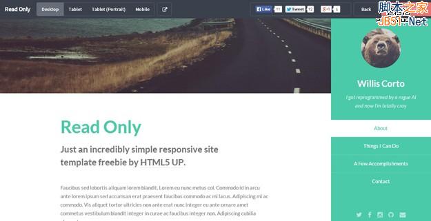 Read Only 也是一款漂亮的响应式网站模板,整个模板设计清爽而简约,不论是用来做博客还是Web应用都是不错的选择。