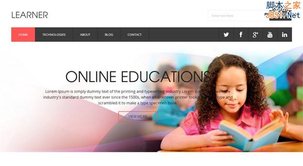 Learner是一款为教育领域所定制的扁平风响应式网页模板,由W3layouts独家提供。当然,这套模板还可以适用于产品展示之类的网站,对移动端支持也非常不错。
