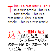 注意:first-letter支持IE7+,first-line支持IE8+