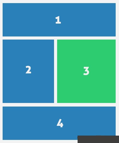 在这个例子中,我们将有两个类型的内容:主要内容和次要内容。区域1,2和4中我们填充主要内容,而次要内容将显示在区域3,见下图。